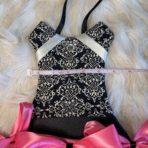 Girls Damask Dress Bow Holder with Tulle Tutu Red and Pink