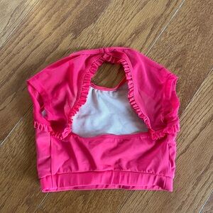 Vibrant watermelon color dance top by Balera. Rhinestones were added for performance, but never worn. Great for dance class or stage!