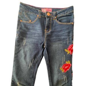 Girls Denim Pants with Red Roses Ripped Jeans Adjustable Inner waistband Size 10