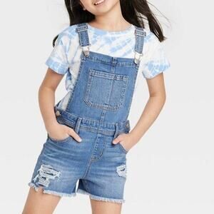 Girls' Destructed Jean Shortalls | Cat & Jack | X Small (4/5)