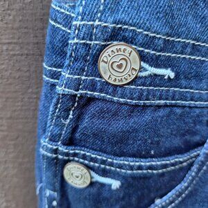 Girl's/Kids 100% cotton denim Tinkerbell themed bib overalls. Adjustable length straps. Patch hip pockets. Top stitching. Great piece. Super condition.