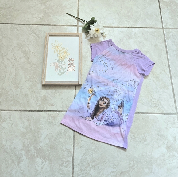 This delightful lavender short sleeve nightgown features a charming Asha from the movie WISH graphic, perfect for adding a touch of magic to any outfit.