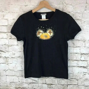 Girls Disneyland Resort Tee shirt size Medium. Black with Gold 50 Disneyland Resort Mickey Ears Graphic on the front and Metallic Gold Mickey Ears on the back. Made of 100% Cotton and in gently used condition. Please see picture's.
