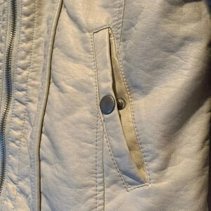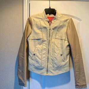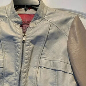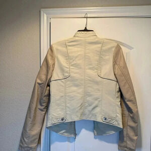Creme Beige and Tan 2 Tone Moto Faux Leather Jacket Full Zip