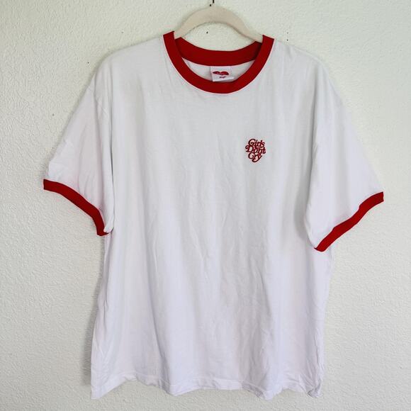 Girls Don't Cry Shirt Mens Large Ringer Tee Embroidered Logo Verdy Los Angeles