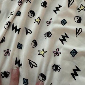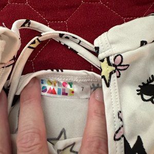 Girls size 7 Dot Dot Smile dress! Used but in good condition. The pattern. has a very 80's vibe to it with ying yang signs, hearts, stars and zig zags.