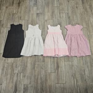 Girls size 7 & 8 dress lot of 4 featuring assorted brands including Crazy 8, Old Navy, Gymboree, and Carter’s. Mix includes dressier styles perfect for church, parties, holidays, or special occasions. Good pre-owned condition with normal wash/wear and no damage. Measurements are included in the photos.