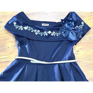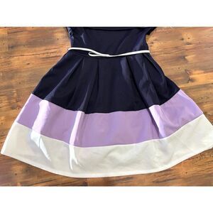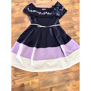 Girls Dress & Matching Bow Knit Works Navy Lavender White with Belt New Without Tags (18 1/2)