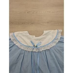 Girls Dress Pastel Blue polka with White Lace Vintage