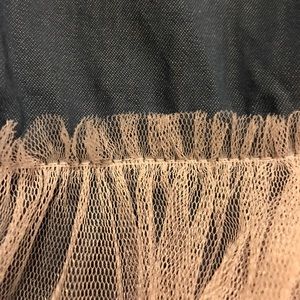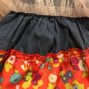 Girls Dress with Floral / Tulle Tiered Ruffles - upper area cotton with denim look. Tie back as well as hook and eye closure. Size 5.