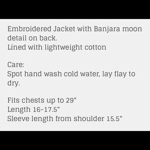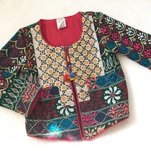 Brand new one of a kind VINTAGE embroidered girls jacket. first two stock photos are for illustration only. Third and fourth picture is the jacket I’m selling. Oh so trendy and CHIC. Hand crafted item from a talented seamstress. There are some loose threads due to the delicate nature of this hand sewn piece.