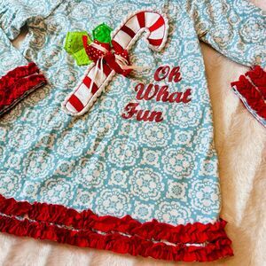Girl’s Emily Rose candy cane “oh what fun” Christmas top/tunic in good condition. No obvious flaws. No holes, no stains.