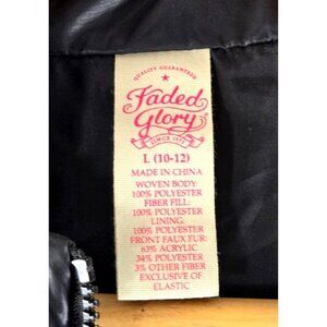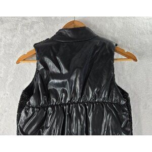 Girls Faded Glory Vest Large Faux Black Fuzzy Fur Silver Threads Puffer Back Qui