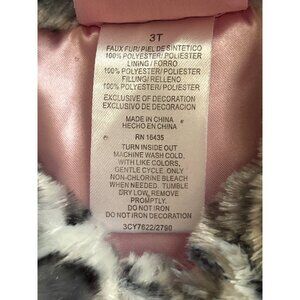 Girls Faux Fur White Gray Leopard Print Coat Pink Bow Accent & blingy Buttons 3T