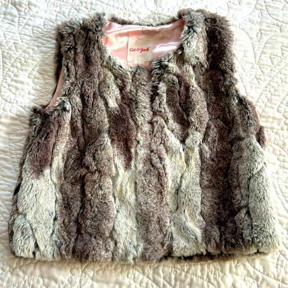Cat & Jack Girls Faux Rabbit Vest. Perfect for the holidays or everyday wear. Pink silk lining with faster enclosures.