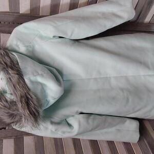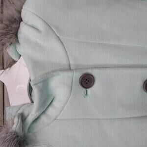 This stylish mint green coat is perfect for chilly days, blending comfort and elegance. Designed for warmth and fashion, it features a soft fabric and a cozy hood adorned with a luxurious faux fur trim. Key features include: