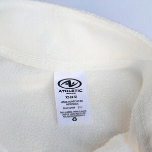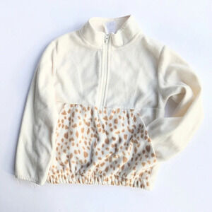 Athletic Works Girls size XS(4/5), cream faux fleece pull-over with cozy leopard print front kangaroo pocket and front half zip closure. 70% Polyester/30% Recycled Polyester.