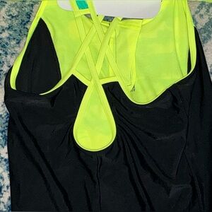 Vibrant floral swimsuit with a neon yellow cover-up Shorts. Perfect for summer fun.