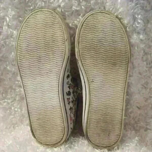 Mary Jane style meets sneaker comfort in the Kids' OshKosh B'gosh Lola Flower Mary Jane shoe. All over floral pattern on white background with blue trim. Velcros straps with gold buckle decoration.