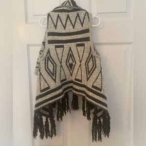 Girls Fringe Sweater Vest size 4T+. I got this at a children’s boutique as size 4T but the arm holes are big, it could fit 4-8T which is nice to not grow out of fast. Arm holes measure almost 8” see pic. It’s never been worn, only because my daughter did not like it and always wanted to wear pink everything. I wish it was my size:) super cute. Would be really nice for family photos too.