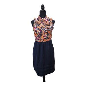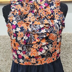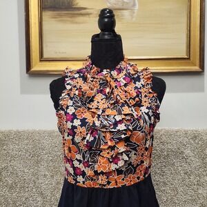 Girls From Savoy Anthropologie Floral Ruffle Dress Size 6 Navy Orange Sleeveless