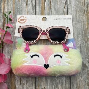 Girls Fun Summer Sunglasses With Unicorn & Fox, Faux Fur Carrying Cases