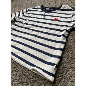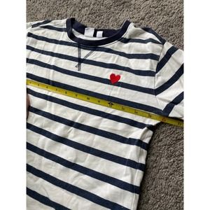 Girls GAP navy/white striped crewneck with heart, size M (8)