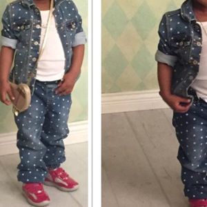 Denim set/polka dots...Worn once for photos...Like NEW! Great condition, no stains or damage. Will be sold together as a set.