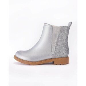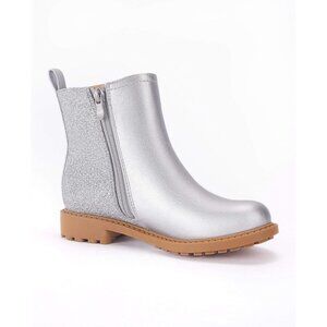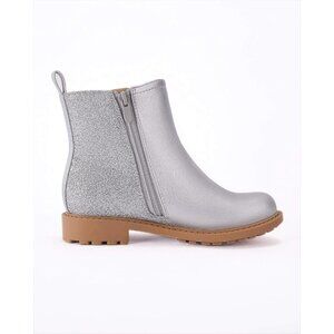 Girls Glitter Silver Ankle Boots Side Zipper Comfortable Chelsea Dress Booties