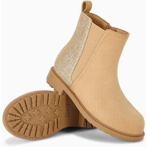 Girls Glitter Tan Ankle Boots Side Zipper Comfortable Chelsea Dress Booties