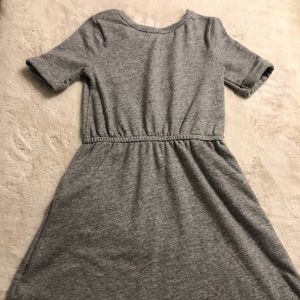 Every girl loves a dress with pockets! Gray heather Joe Fresh sweatshirt dress, size large (10-12). The dress has rolled sleeve detail, a gathered waist complete with a small bow, and POCKETS! Perfect with tights or leggings this fall!