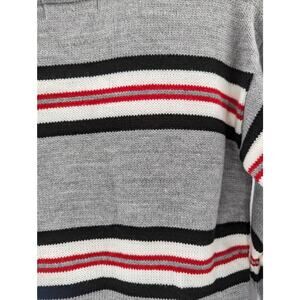 This Cotton Emporium knit sweater is perfect for your stylish girl! The gray sweater features black, white, and red stripes, adding a pop of color to her outfit.