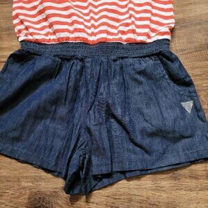 Girls Guess Romper Top Shorts Size Large 12 Denim Red White Stripes Nautical.