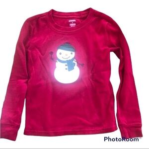 Festive Deep Red Gymboree Holiday Snowman Super Snug Fit 2 Piece Little Girls PJ’s Size 6