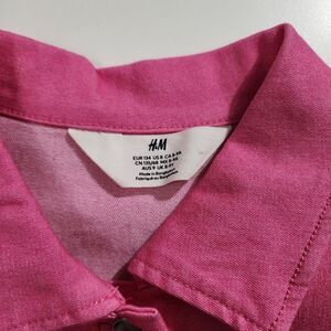 Girls H&M Bright Pink Cerise Denim Button Up Cotton Jacket Size 8 NEW w/o Tags
