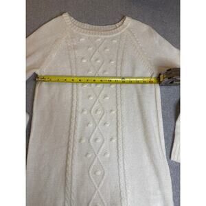 Cozy and stylish, this ivory H&M sweater dress is perfect for chilly days. It features a beautiful cable knit pattern with textured bobble accents, a flattering longline silhouette, and ribbed cuffs and hem for a snug fit. Soft, warm, and comfortable — ideal for layering with leggings or boots.