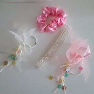 Pre-owned, in very good condition. Lot of 4 items - One pearly headband, 2 ponytail holders, 1 scrunchie. See Photos.