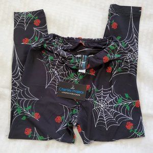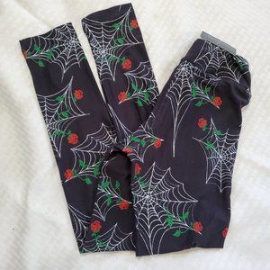 Girls Halloween Spider Web Leggings size S/M Black Red White Green