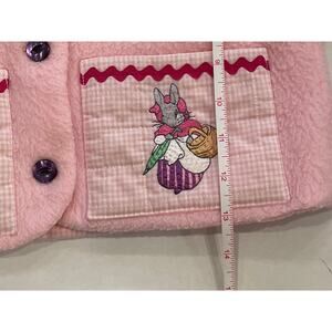 Girl's Handmade Pink Fleece Coat, Mouse, Bunny, Pockets, Ribbon Detail, 4-5T