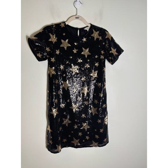 Girl's Hayden Black Sequin and Gold Star Party Dress Sz L