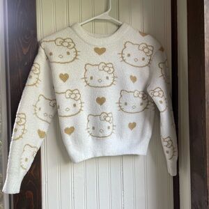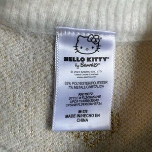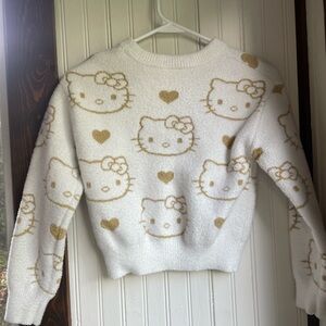 Preowned good condition. Cozy up in this girls charming Hello Kitty sweater, featuring a delightful white and gold design. Perfect for adding a touch of fun to your wardrobe. Size medium 7/8