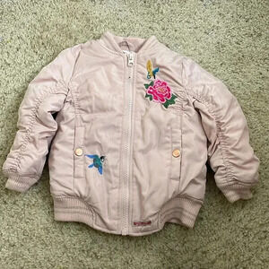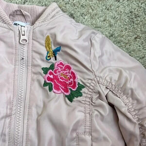 Zipper and snap button closure, with Snap button front pockets. Embroidered embellishments have no pilling. Great condition.