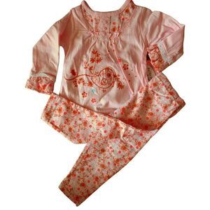 2. Kathy Ireland: 2 Piece Outfit, Pink Floral Tunic Top with Birdie Applique & Ruffle