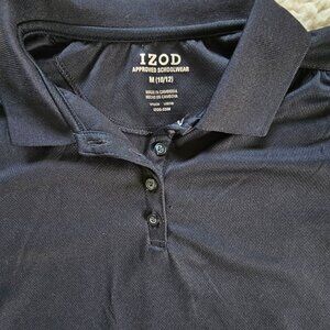 Girls Izod Navy Blue Polo Shirt M (10/12) 100% Polyester Short Sleeve