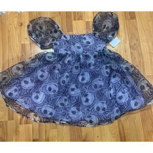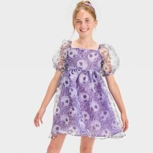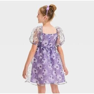 Girls' Jack Skellington Halloween Short Puff Sleeve Dress - Purple Medium