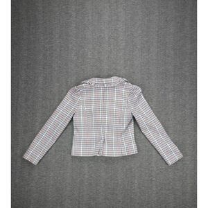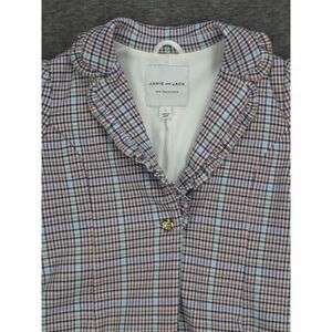 Girl's Janie & Jack Plaid Blazer Jacket w Gold Button Size 7 Puff Shoulder