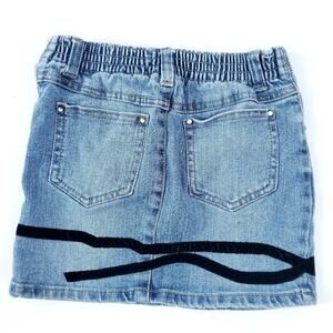Girls Jean Denim Skirt Blue Black Velvet Size 6X Blue Jean Elastic Waist