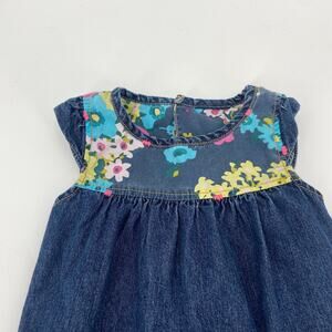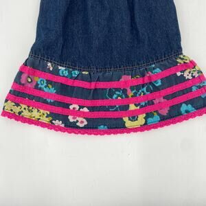 Adorable girls' jean dress featuring delightful floral accents and charming ruffle details. This dress is perfect for your little one!