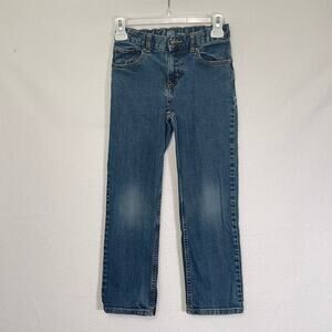 Girls Jeans Size 10 Lot of 2 Pairs Relaxed Straight Leg Blue/Black Wonder Nation. Couple of tiny marks on the jeans shown in photos. Still in wearable condition. Both pairs have the adjustable waistband inside.