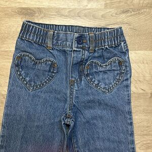 Girls Jeans. Carter’s size 5. Elastic waist. Front heart pockets. Super soft. No rips or stains. Knees are a little worn, but lots of wear!